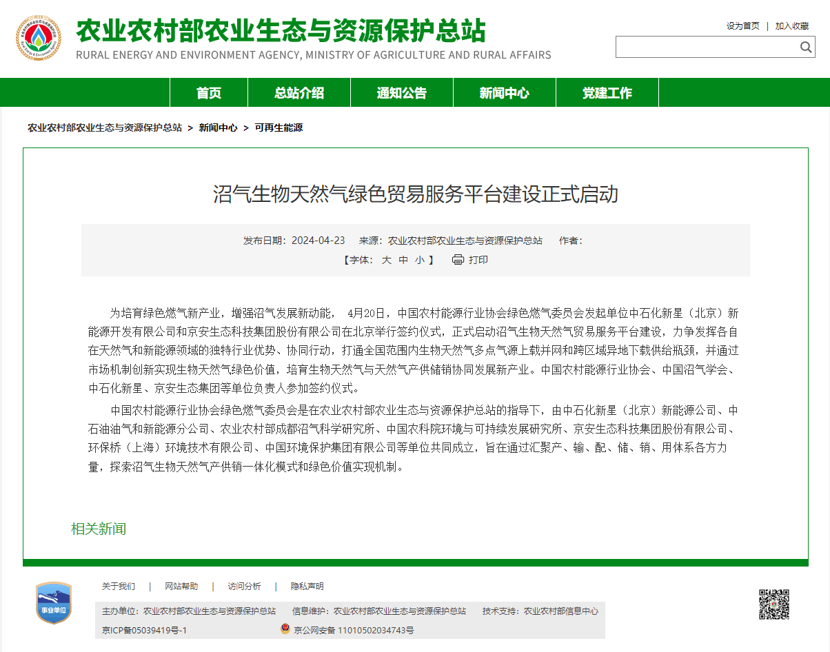 沼气生物天然气绿色贸易服务平台建设正式启动